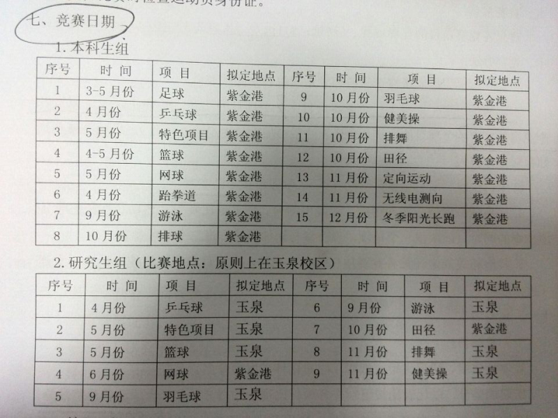 l 领队、教练员会议:定于5月9日(周五)下午15:30在紫金港校区田径场2楼会议室召开,确定小组赛分组等事项。