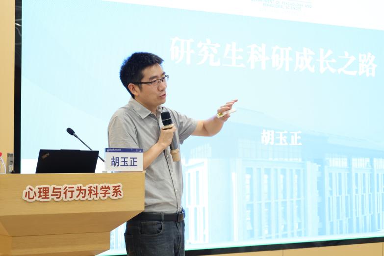 胡玉正以“研究生科研成长之路”为题,向同学们分享如何找到适合自身的成长道路。他指出在具有挑战的新环境下,大家应当练就成长型思维,秉持学术诚信原则,积极作为,主动与导师沟通,合理规划时间,并通过问题分解和第一性原理开展科研,实现自我提升。