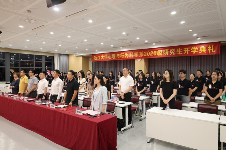 2025年9月19日晚,浙江大学心理与行为科学系2025级研究生开学典礼在紫金港校区海纳苑3幢537报告厅隆重举行。心理系系主任陈辉,党委书记吴子贵,系党委副书记陈妙峰,副主任胡玉正,德育导师周吉帆、张萌、孔祥祯等出席典礼。典礼由陈妙峰主持。