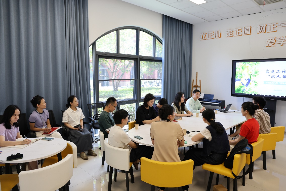 在交流讨论环节,在场其他老师就如何在家庭与工作之间找到平衡点、如何培养孩子的综合素质等问题展开了热烈讨论。