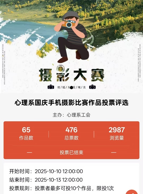 此次手机摄影大赛,不仅为老师们的假期生活增添了乐趣,提升了幸福感与归属感,也进一步营造了心理系和谐、温馨的“家”文化氛围。老师们在光影交错中,共同铭记了国家的辉煌成就,也珍藏了属于个人与集体的温暖记忆。