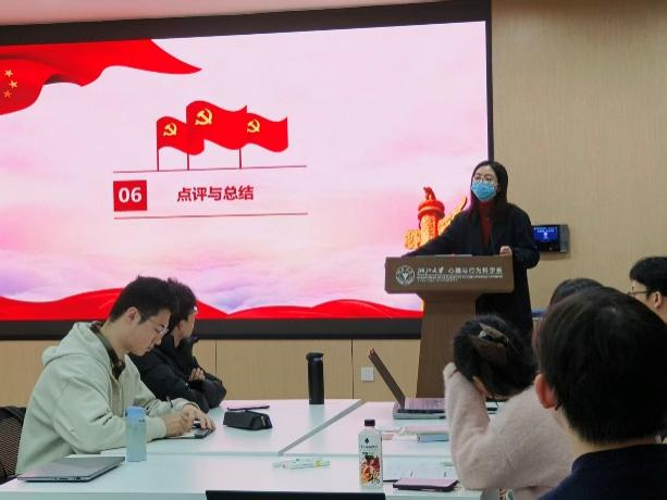 活动尾声,罗悦老师作总结点评。她指出,本次讨论的核心价值在于“知行合一”——将党员标准内化于心、外化于行,把创新理念转化为科研攻关中的主动探索和服务社会的具体行动。此次主题研讨有效实现了红色教育与专业成长的有机融合,不仅深化了学员对“学习—创造—担当”逻辑链条的理解,也为培养兼具政治素养与创新能力的新时代青年党员奠定了坚实基础。