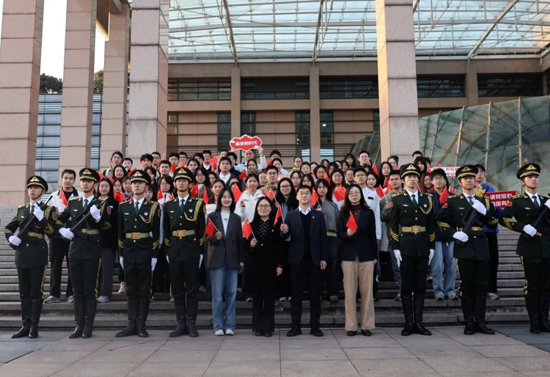 10月29日清晨,心理系在基础图书馆前举行升旗仪式。党委书记吴子贵勉励师生以“国之所需”为己任,学生党员代表黄品嘉呼吁新时代青年把个人价值融入国家需求,用行动诠释担当。仪式化作一堂生动的爱国主义课,为现场学员们点燃了矢志奋斗的报国之心。