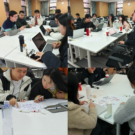 参观结束后,大家带着现场教学的深刻感悟与饱满热情,以“世界咖啡”的模式在系楼展开了《从‘会学习’走向‘会创造’》主题讨论。活动通过三轮对话引导同学们思考:从“夯实精神根基”的理论思辨,到“会读书”与“会创造”的内涵辨析,最后则立足科研实际与社会需求,探索二者在实践中的融合路径与转化机制。同学们在流动式的分组讨论中碰撞思想火花,并在最后将讨论结果以思维导图汇报的形式呈现,内容既体现理论深度,又紧贴实际需求,展现了学员们的逻辑思维能力、创新意识与使命担当。