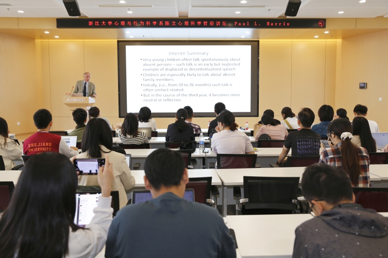 On the morning of May 13th, the Chen Li Frontiers in Psychological Science Lecture Series, hosted by the Department of Psychology and Behavioral Science at Zhejiang University, was successfully held in Lecture Hall 537, Building 3, Hainayuan, Zijingang Campus. The event featured Professor Paul L. Harris, the Victor S. Thomas Professor of Education at the Harvard Graduate School of Education, as the keynote speaker. He shared his research findings on children's attachment theory and social cognitive development, exploring cutting-edge studies on theory of mind. Professor Harris is a Fellow of the American Academy of Arts and Sciences, the Association for Psychological Science, and the British Academy. He has served as an editorial board member for top-tier international journals such as Child Development and Human Development. He and his team have demonstrated exceptional research capabilities in the fields of child cognition, emotion, and attachment. The lecture was chaired by Professor Jie He.