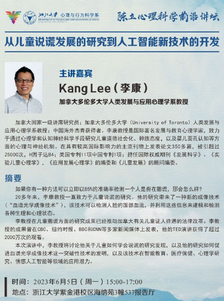 In this lecture, Professor Lee will discuss his research discoveries on how children learn to lie, and how his work has facilitated the invention of the breakthrough transdermal optical imaging technology, along with its potential applications in intelligent education, healthcare, psychological research, affective AI, and other fields.