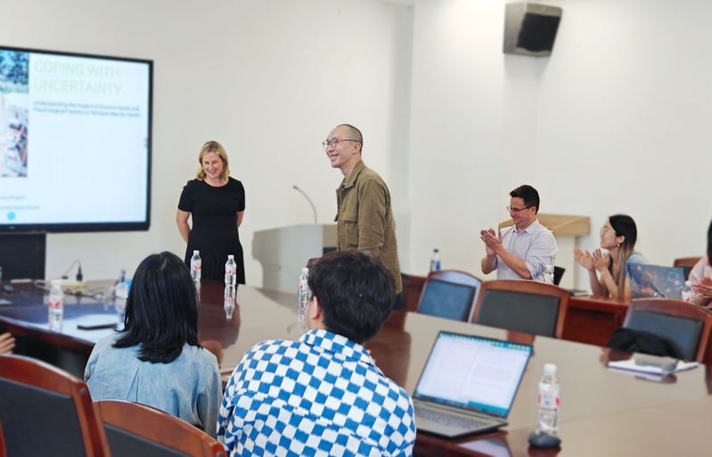Before the lecture began, Dr. Nathan Thomas Han introduced Professor Nickerson's research background to the attending faculty and students. Her work primarily focuses on understanding the psychological mechanisms underlying the mental health of refugees and post-conflict individuals, as well as developing effective interventions to address trauma responses in refugees. She also pays attention to the impact of refugee mental health policies and is interested in cross-cultural psychological processes. She has worked extensively with refugee and post-conflict populations in Australia, Switzerland, the United States, East Timor, and other regions. Prior to joining the University of New South Wales, Professor Nickerson conducted postdoctoral research at Harvard University and Boston University. Her key research findings have been published in high-impact journals such as Clinical Psychological Science and Psychiatry Research.