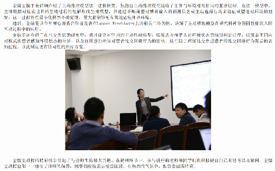 Subsequently, Jingwen Jin used her collaborative work with researchers from the Department of Psychology, published this year in Lancet Psychiatry, as an example to explain the application of the active inference model in studying interpersonal interactions related to negative symptoms of schizophrenia.