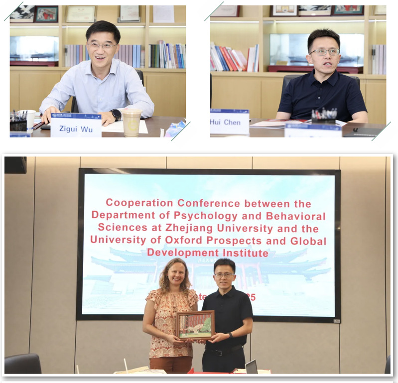 On the afternoon of September 25, a delegation from Oxford University's Global Development and Prospective Institute visited the Department of Psychology and Behavioral Science at Zhejiang University. The delegation included Dr. Lana Delerue (Program Director), Dr. Jason Lu (Liaison Director), and Ms. Evie Brown (Academic Promotion Director). They were received by Professor Zigui Wu (Party Secretary of the Department), Professor Hui Chen (Department Head), and Researcher Liyu Cao.